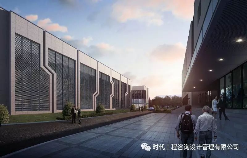 建筑的整體造型旨在與一期建筑的造型相協調的基礎上有所優化和創新。形體上:建筑體量簡潔大方,簡潔的建筑體量中體現出豐富多變的層次感,符合現代建筑的發展趨勢。立面上:二期建筑的立面設計在與一期建筑相協調的基礎上,結合電信企業特色,以電路板、服務器機柜為原型,提煉豎向線性元素作為建筑主要元素,凸顯電信信息類建筑獨特性,展示電信企業文化,同時體現出中國電信作為現代化、高科技企業的形象,成為蘇州市高新區(虎丘區)太湖國際科技園的良好建筑形象。同時,局部穿插透明玻璃及深灰色百葉,營造出立面的層次感和虛實對比。材質上:以淺灰色仿石涂料為主要的墻面材質,搭配深灰色涂料,強調建筑形象的穩重大方,契合電信企業的文化特征,也與一期建筑色彩相協調,同時少量點綴代表信息化的綠色,增加建筑整體活力。