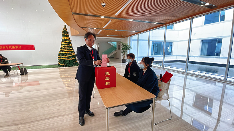 2021年12月8日為姑蘇區人大代表的選舉日。初冬已是寒意襲人,而公司一樓大廳卻都是一派莊嚴熱烈的場面。上午九點半,在公司選民的見證下,工作人員拆開裝有選票的信封,并分發選票。拿到選票后,每位選民都本著公平、公正的態度認真填寫,然后走到投票箱前鄭重投下自己莊嚴而神圣的一票。最后,工作人員把投票箱貼好封條,及時送到了蘇州工業園區人大工委。