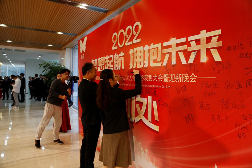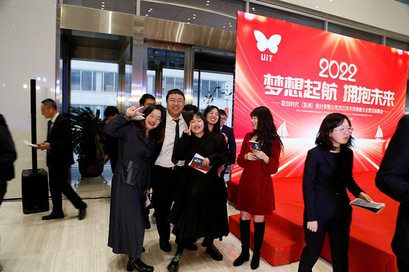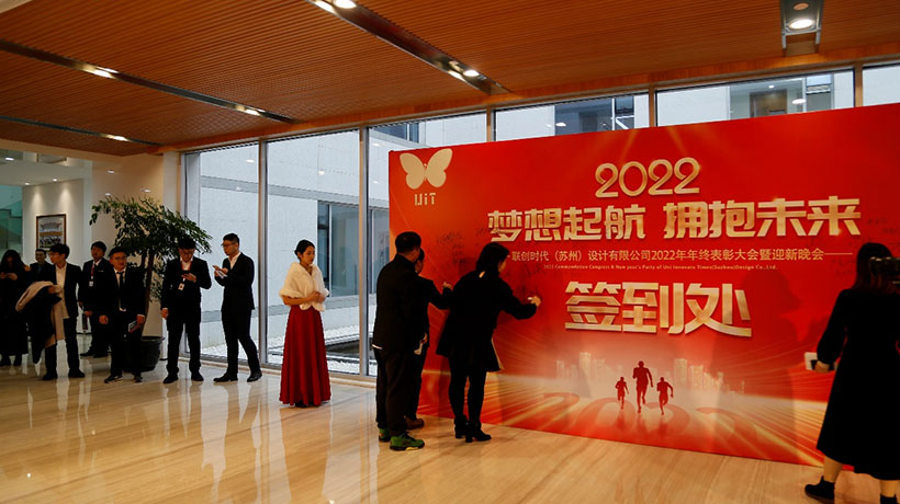 2022年1月27日,聯(lián)創(chuàng)時代(蘇州)設(shè)計有限公司“夢想起航、擁抱未來”新春團拜會在公司大廳隆重舉行,全體員工歡聚一堂,共度歡樂時光。